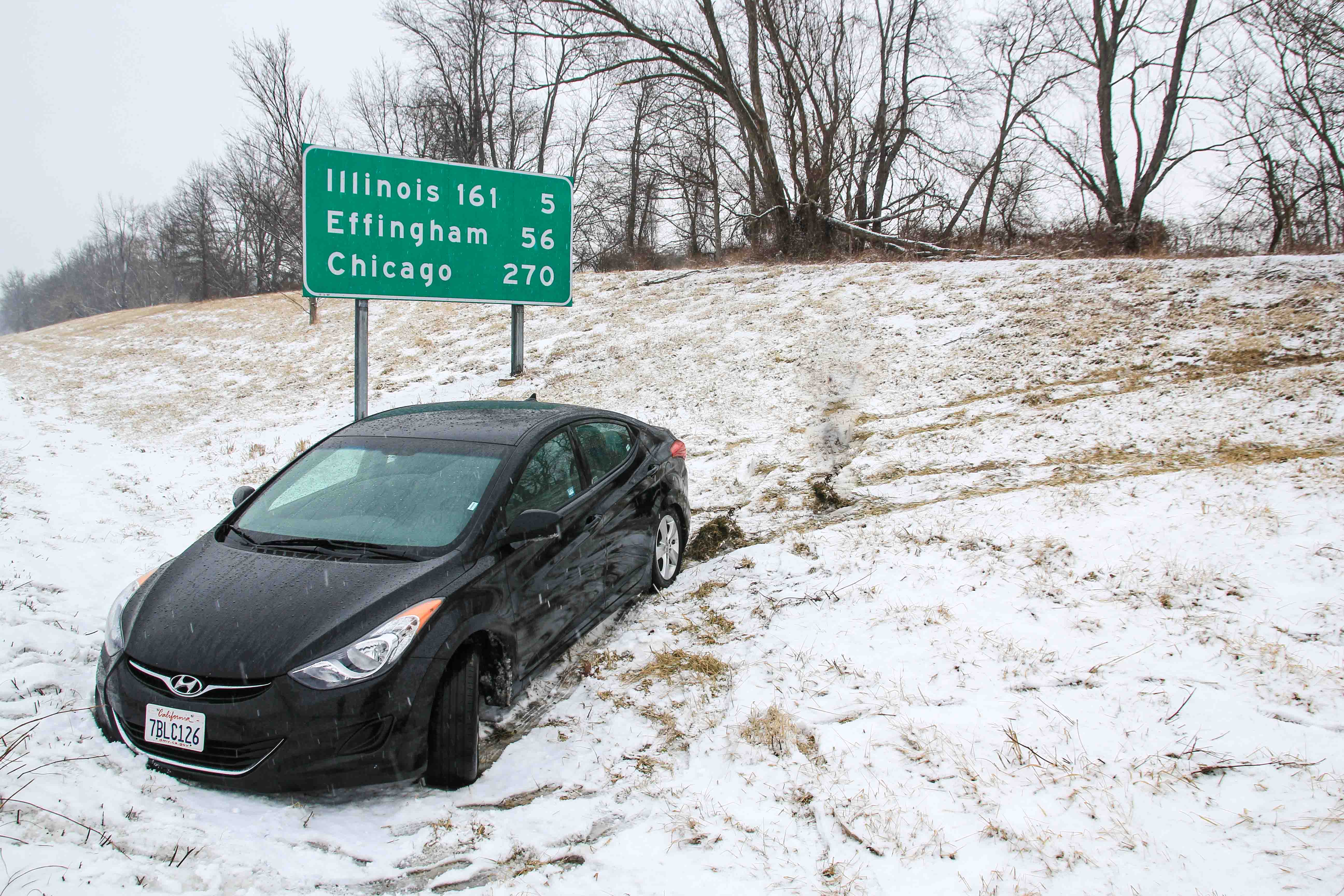 車道からここまで滑り、