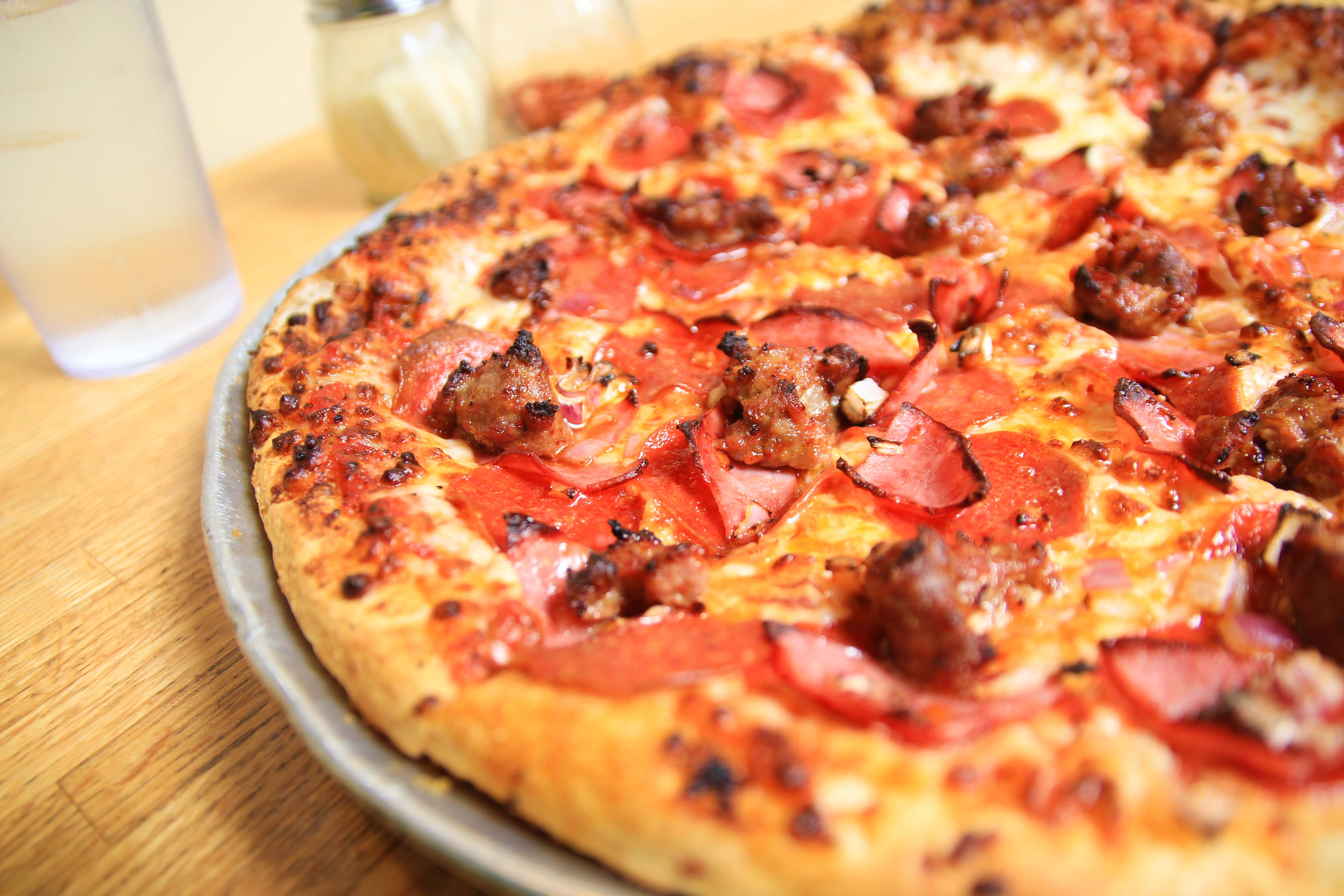 そのあとは昼食。最古の家に隣接している最古の次に古そうな(適当)ピザ屋さんへ。そこでクラシックミートピザのラージを食す。